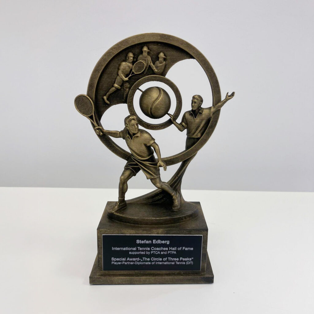 The Circle of Three Peaks is a unique and prestigious honor recognizing excellence at the highest levels of tennis. This Award celebrates an individual who has achieved the rare distinction of being a world No. 1 in singles, a world No. 1 in doubles, and a coach of a world No. 1 player—a true embodiment of mastery as a player, partner, and mentor on the international stage. In a tribute to tennis excellence, Stefan Edberg, a living legend who exemplifies these achievements, will personally present this Award to its successor, passing on the torch to the next generation of extraordinary talent. The Circle of Three Peaks stands as a symbol of unparalleled skill, dedication, and contribution to the sport of tennis.